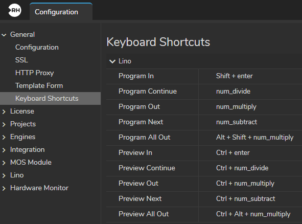 Keyboard Shortcuts allow you to assign Lino shortcut buttons for broadcast operations that can be accessed through dedicated buttons which allows quicker task execution.