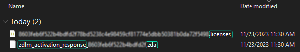 - Save the zdlm_activation_request*.zda file in a driver of your choice.