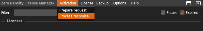 - Send the Activation Request file to our licensing department via licensing@zerodensity.io.