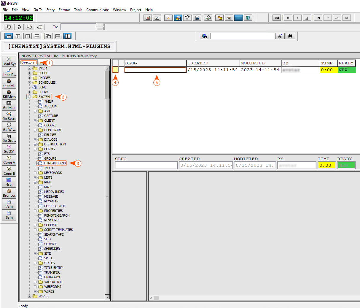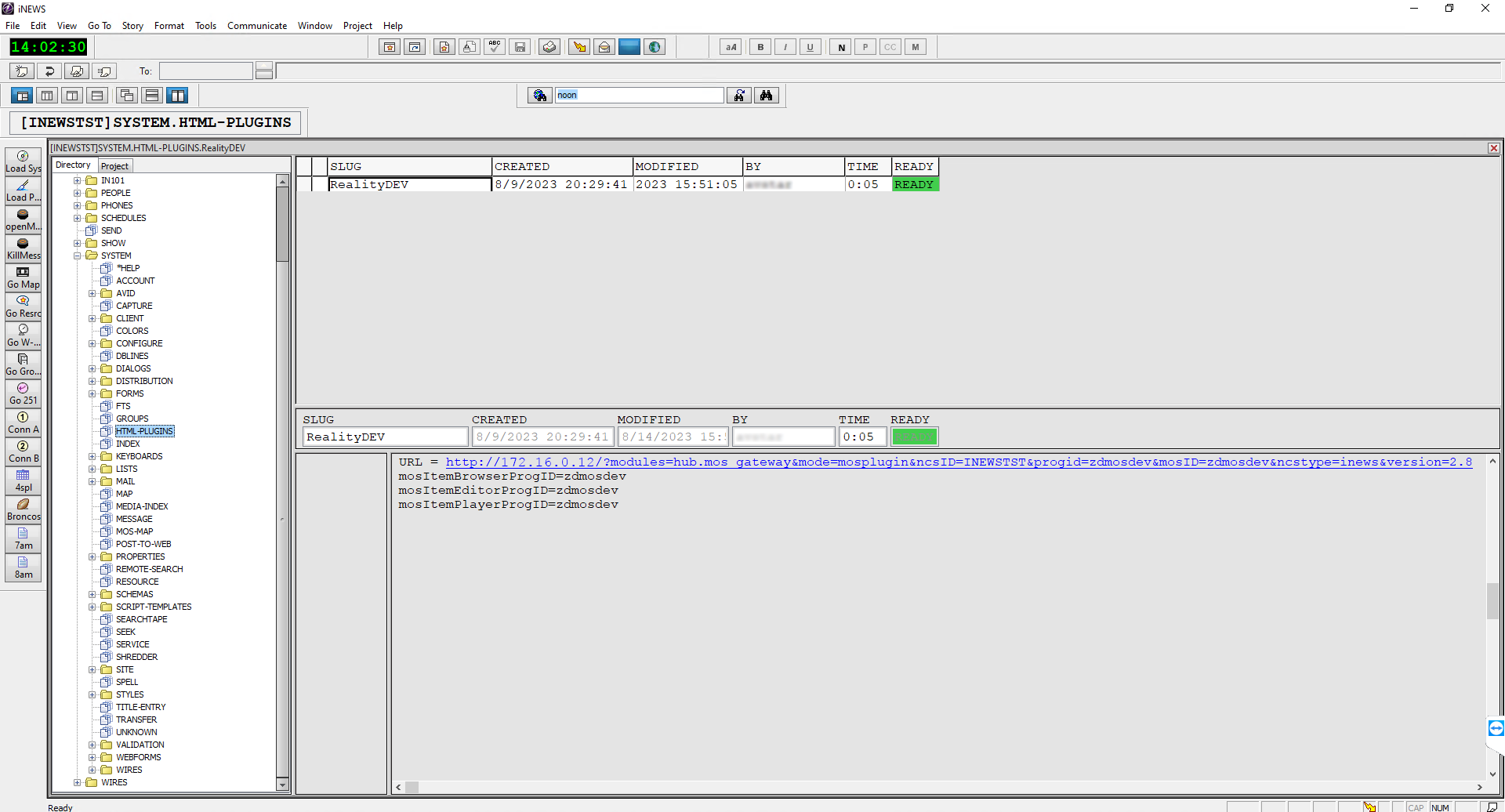 - In the iNEWS Directory section, expand the System and double-click on the HTML-PLUGINS.