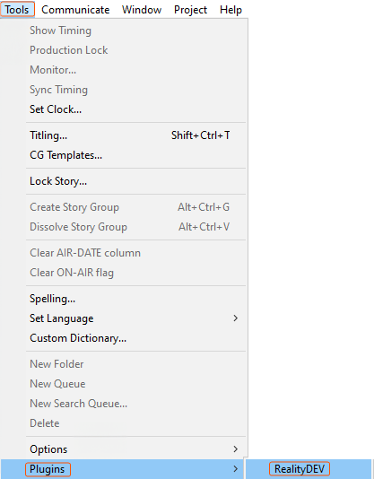 - Switch to iNEWS, go to Tools > Plugins, and select the Reality Hub plugin.
