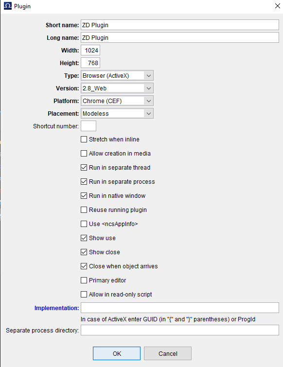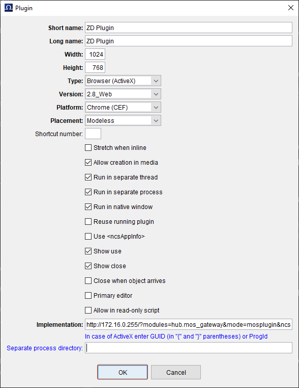 - Paste the MOS Plugin URL to the Implementation field inside the MOS Plugin.