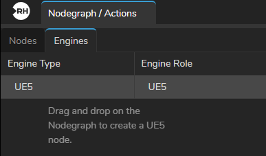 - Go to the Engines tab, drag and drop the UE5 node into the Nodegraph canvas.
