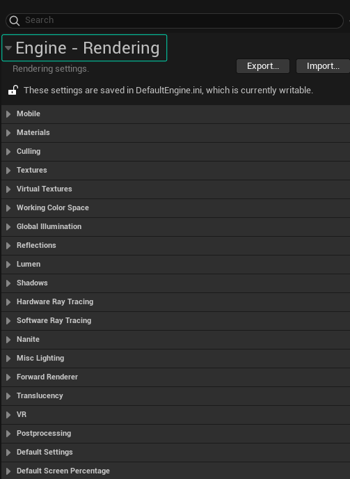 Engine | Rendering in Project Settings