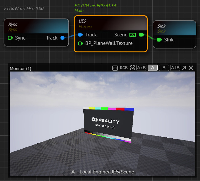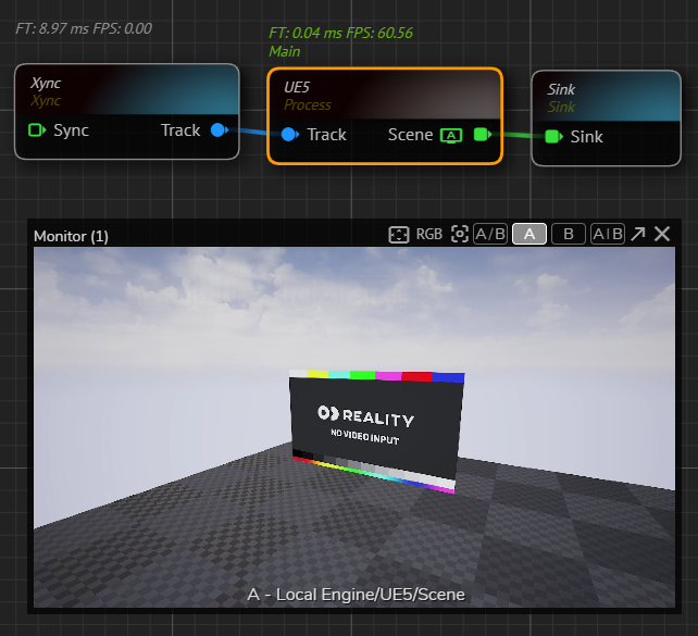 • Create a Sink Pin on RealityCamera0.Scene output pin of the UE5 node.