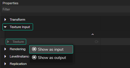 • Go to Texture property, right click and select the Show as input from the Property Context Menu.