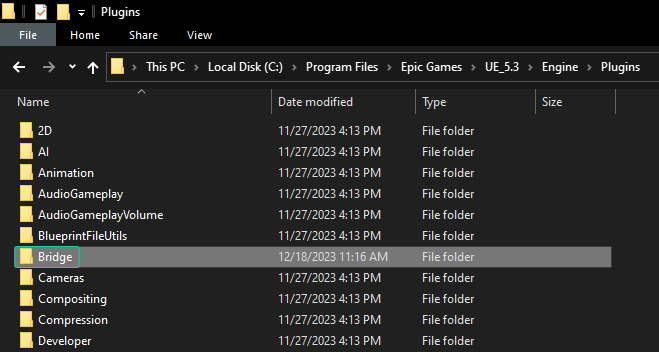 - Navigate to the Plugins folder within Unreal Engine Vanilla.