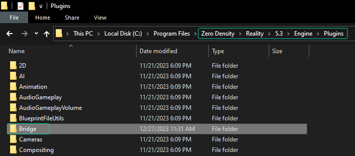 C:\Program Files\Zero Density\Reality\5.6\Engine\Plugins)