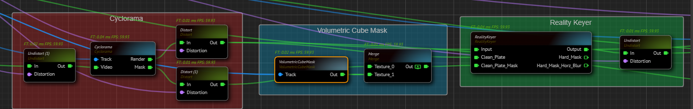 The image above illustrates that the Cyclorama mask color matches the Volumetric Cube Mask color.