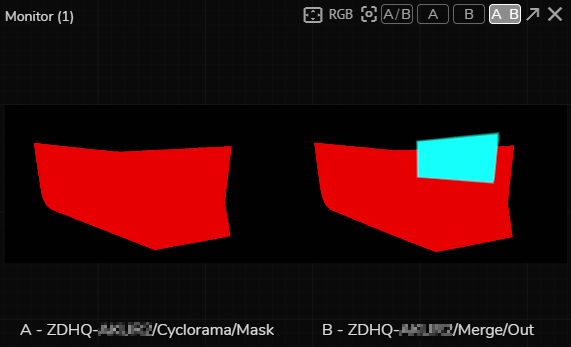 - Activate the APM (Advanced Preview Monitor) Channel A on the Mask output pin of the Cyclorama node.