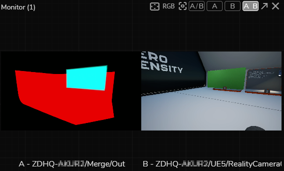 - Activate APM Channel B on the Out output pin of the Merge node, and click on the APM Multiview (A|B) button.