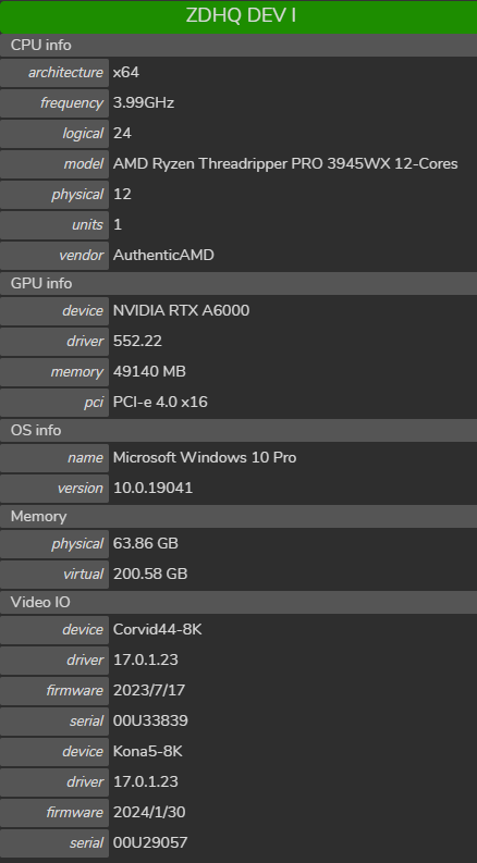 • Serial: The serial number of the video I/O device.