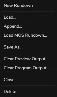 Rundown Menu enables you to perform various rundown operations, such as creating a new rundown, loading a previously saved rundown, or appending to an existing one.
