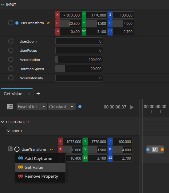 - Select the Get Value, right-click again and select the Add Keyframe.