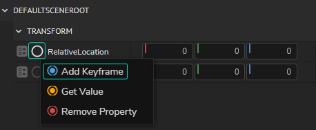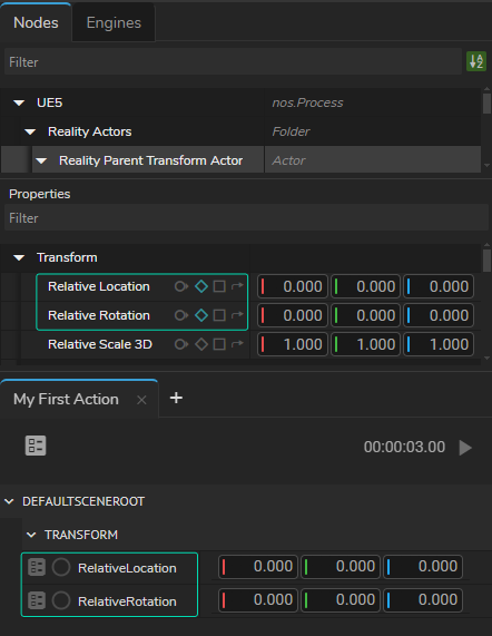 This section will be animating Reality Parent Transform Actor's Relative Rotation and Relative Location properties, located under Transform property group.