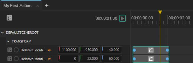 As the above image illustrates that Relative Location and Relative Rotation properties are now subject to the Actions module and are ready to be animated.