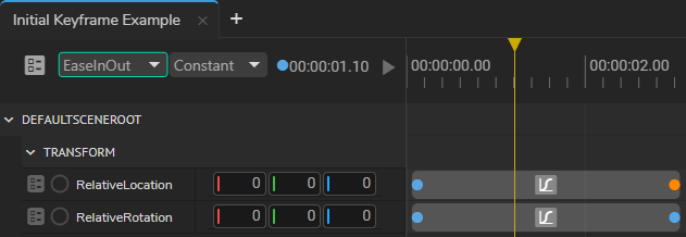- Select the first keyframe of Relative Location and Relative Rotation, change their keyframe type from Constant to Initial, as shown in the image above.