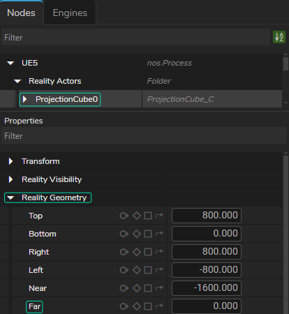 - Select the Projection Cube from the Nodes section, navigate to Properties, expand the Reality Geometry, find the Far property, as illustrated above.