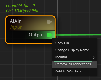 - Right-click on the input or output pin of the node.