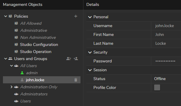- Define personal information (First Name, Last Name, Password) in the Details section.