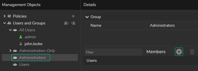 - Select the Administrators and click on the + icon.