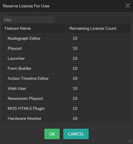 • Since one Playout license is reserved for USER A, only one of the other users (USER B, C, D) will be allowed to use the Playout module at a time no matter the USER A is using the feature or not.