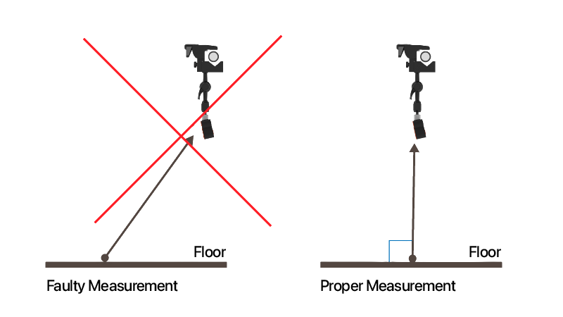 • As shown above, make sure that you measure in a perpendicular position per your camera position.
