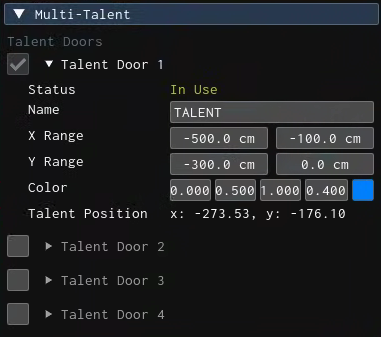 If your license does not include the multi-Talent feature, your property group will be Talent Entry Door. Please visit the Single Talent Tracking