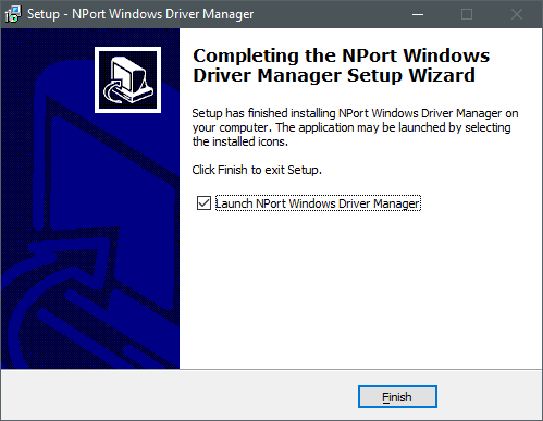 • Click on the Launch NPort Windows Driver Manager checkbox and then click on the Finish button.