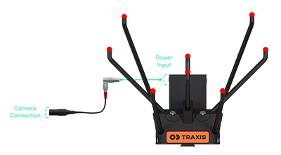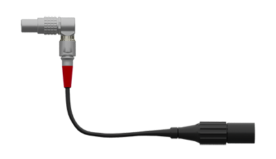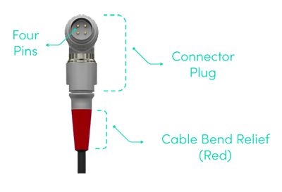 The image above displays the TrackBody power connector plug. As indicated, TrackBody employs different colored bend reliefs to differentiate power cables from lens cables.