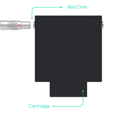 - Power connection on the cartridge is located above the ethernet input and has 4 input pins.