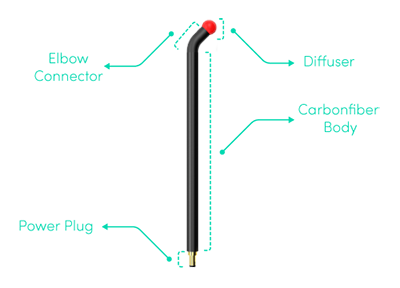 To prevent damage, avoid touching the elbow connector and diffusers. Hold the antenna firmly by the hand closest to the power plug during installation.