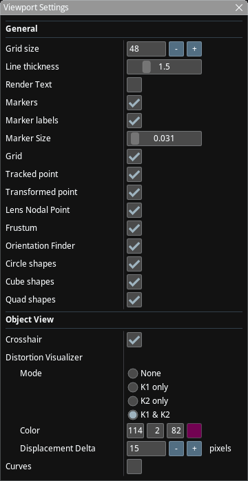 - Marker Size: Size of markers to be rendered. Does not effect calibration shapes.