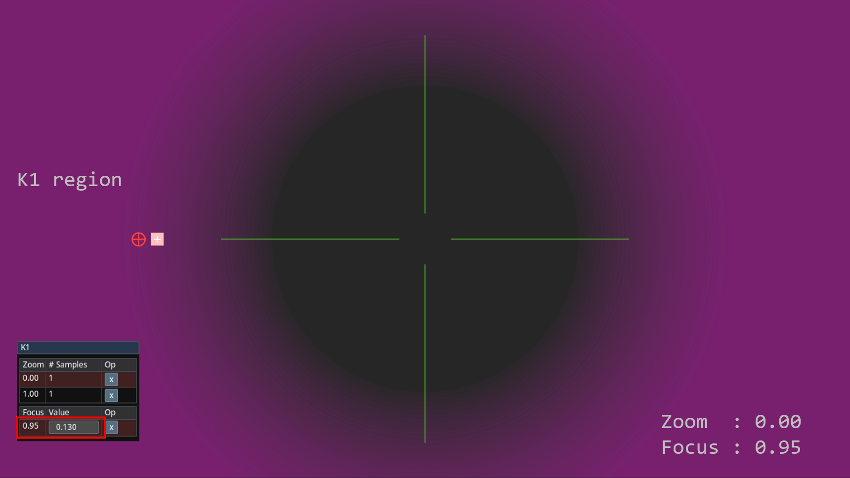 - Restart from the center, experiment with K1 and K2 while panning the camera and moving the marker on the image, and verify the overlap.