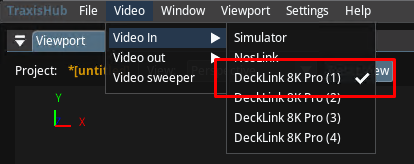 - In Traxis Hub, go to the Video menu, and set Video In to the relevant DeckLink SDI-in.