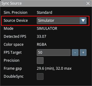 - Launch the Sync Source panel, and set the sync source to the DeckLink input that you have selected.