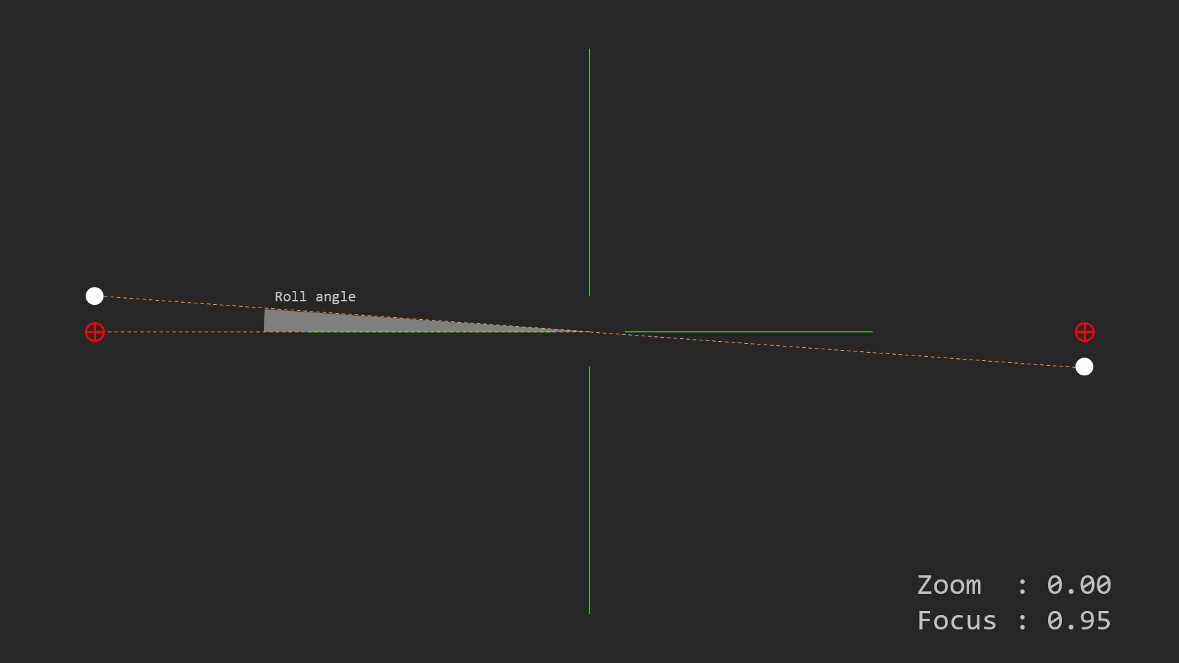 When both markers are at the exact center of the image, we only have positional contributors to virtual markers. Focal Length, Nodal Offset, K1/K2, and even P1/P2 have no contribution. This enables you to focus entirely on positional and rotational offset.